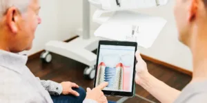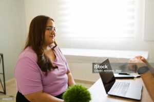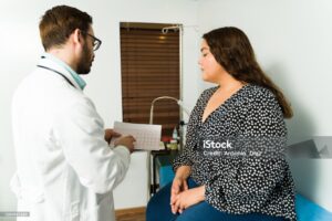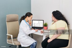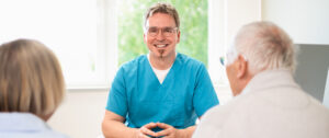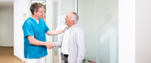 ![]() | 1917 | Happy senior woman talking to male mature physical therapist in rehab center | ||